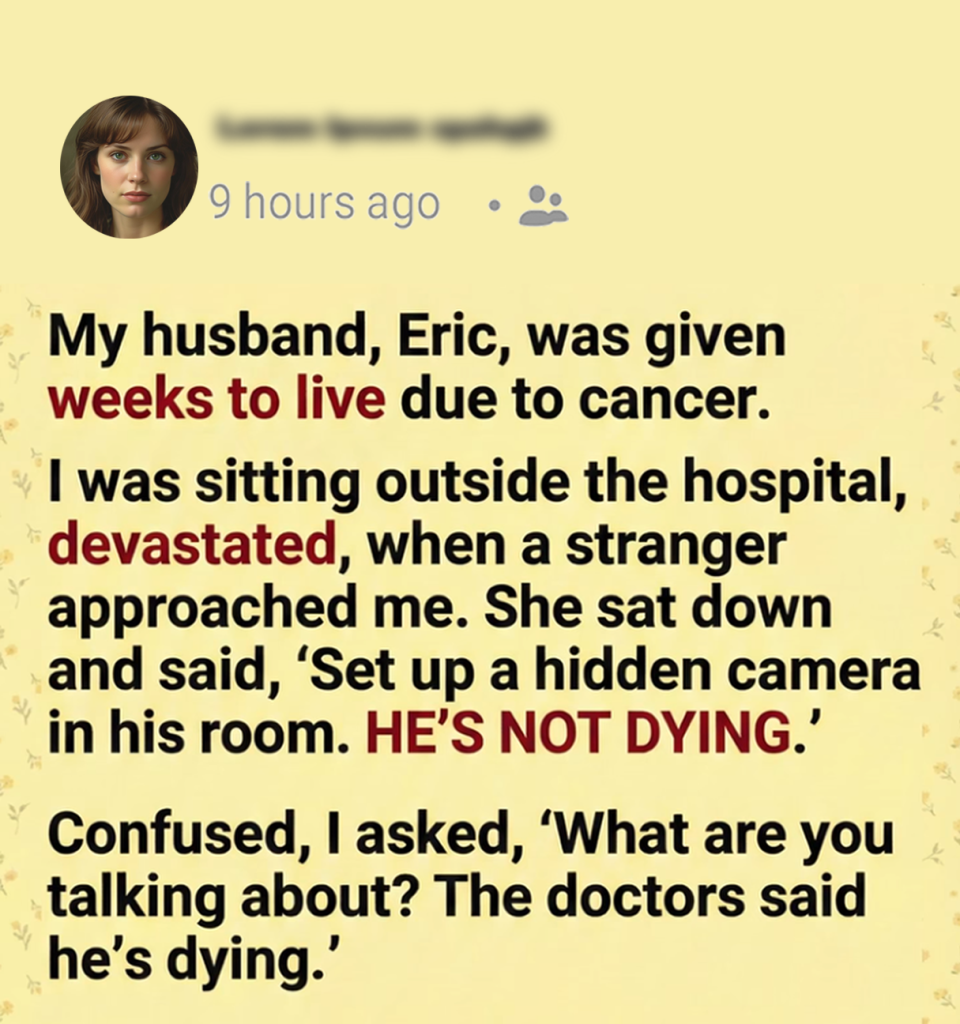 Her words haunted me. Desperate, I secretly set up the camera while Eric was undergoing a scan.