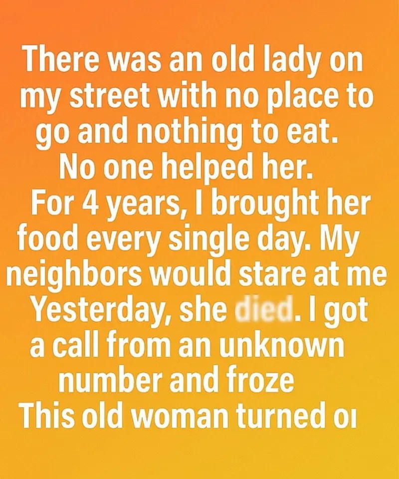 Yesterday, she d:ied. The street felt heavier, emptier, as though the world had lost something sacred and unnoticed. Later that evening, I received a call from an unknown number.