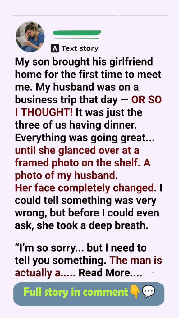 Laura thought meeting her son’s girlfriend would be a joyful milestone. Instead, one family photo exposed a devastating secret: Sophie recognized the man in the frame. He wasn’t just Ryan’s father—he was living a double life. What followed was a night of betrayal, confrontation, and the collapse of a twenty-year marriage.