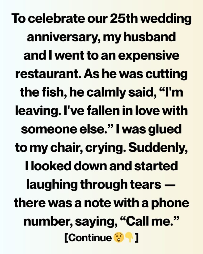 We had planned it for months—our twenty-fifth wedding anniversary, a milestone I once believed meant permanence. The restaurant was elegant in that quiet, expensive way: soft lighting, white tablecloths, a pianist playing something slow and forgiving. I remember thinking how strange it was that after a quarter of a century together, we were still sitting across from each other, still cutting our food side by side, still sharing silence.