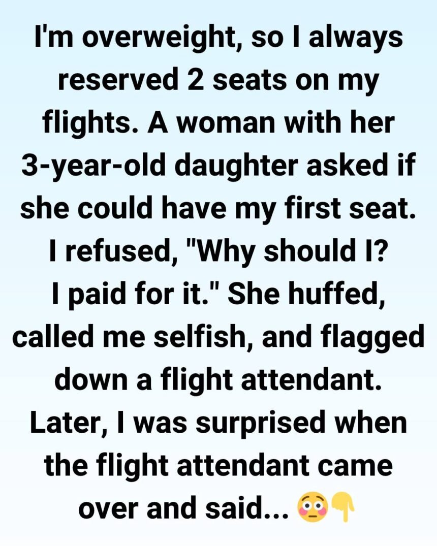 Here’s what happened to me on a recent flight, and I genuinely need opinions on whether I was in the wrong. I’m on the heavier side, and after years of traveling, I’ve learned that for longer flights, it’s better for everyone if I purchase an extra seat. It’s expensive, yes, but it allows me to travel comfortably without intruding on anyone’s space.