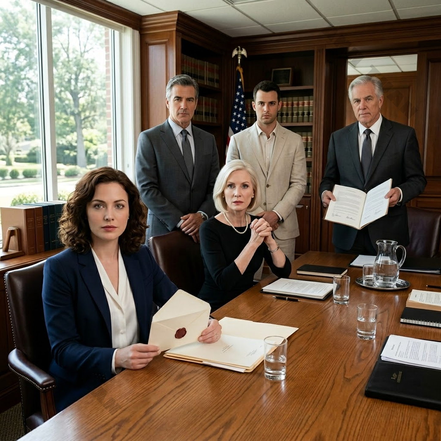 That was all. But I knew her face well enough to understand what that blink meant. It meant she had expected surprises of the manageable kind hurt feelings, maybe a cousin asking whether Eleanor had meant to leave a painting elsewhere, perhaps even a small objection about amendment language. She had not expected a second attorney from a different firm holding a sealed envelope and an entire room suddenly oriented toward him.