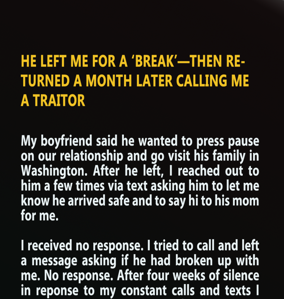 He Left Me for a ‘Break’—Then Returned a Month Later Calling Me a Traitor