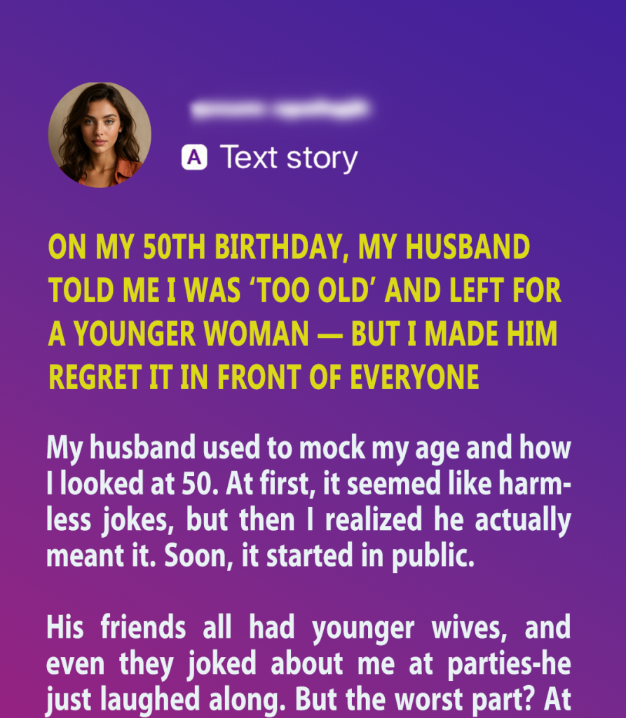 On My 50th Birthday, My Husband Told Me I Was ‘Too Old’ and Left for a Younger Woman — But I Made Him Regret It in Front of Everyone