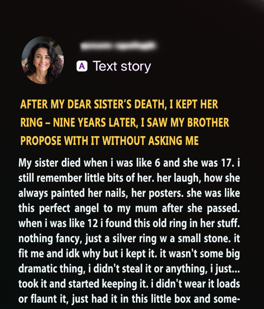 When I turned 12, Mom finally let me help sort through Alicia’s things. That’s when I found it. A simple silver ring with a tiny blue stone, tucked away in her jewelry box like a forgotten secret.