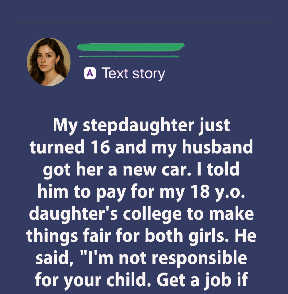 - Advice: Have an honest, age-appropriate conversation with her, not to blame, but to explain. Tell her gently: “I want you to enjoy your car, but I also want you to understand why your stepsister and I feel hurt.” Acknowledge that it’s not her fault, but she deserves to know the bigger picture.