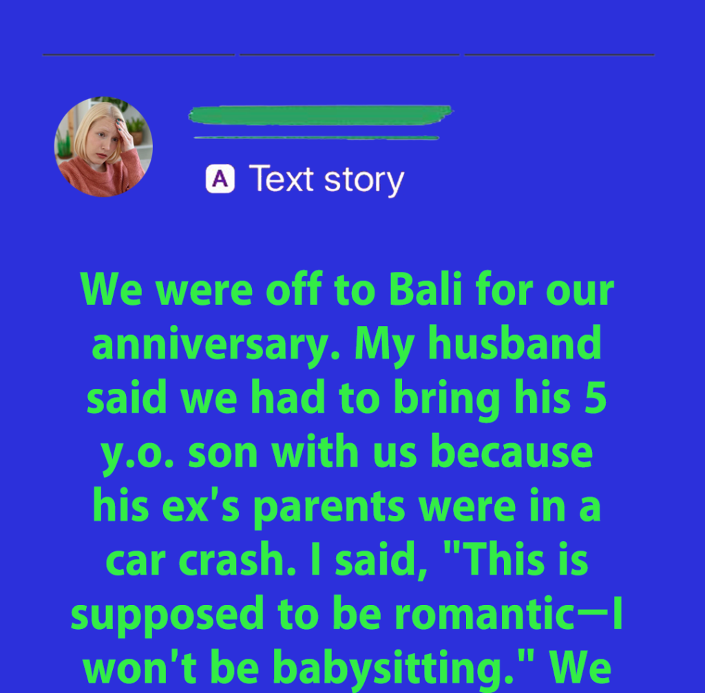 Carly had been eagerly anticipating a romantic anniversary getaway to Bali, but things took an unexpected turn. On the day of the flight, she discovered her husband’s young kid would be joining them. Feeling blindsided, Carly declined, as it wasn’t the intimate trip she’d envisioned, and the situation quickly spiraled. She reached out to share her story and asked for advice on handling this difficult moment.