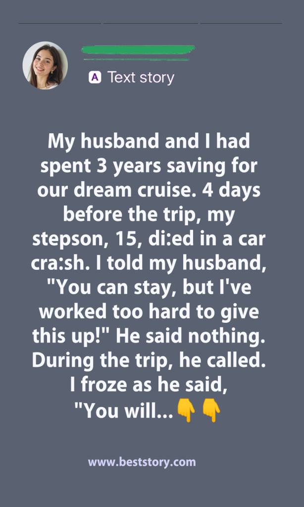 I had saved for this cruise for a decade. Every extra shift, every skipped luxury, every penny hoarded away was for this. A transatlantic journey, just me, finally sailing the open sea. It was my dream, my escape, my promise to myself after years of putting everyone else first. My husband knew how much it meant. He’d seen the travel brochures taped to my fridge, the countdown calendar I’d made. This was my time.