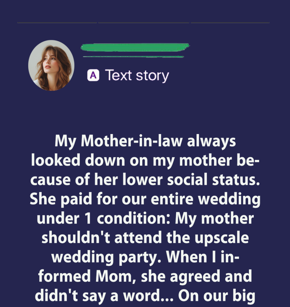 A week later, I went to my mom’s house. She hugged me tightly, without blame, and said, “You’ll learn, darling. Never let anyone make you choose between family and love.” I’ve carried that lesson with me since. My MIL may have gotten her way, but the emptiness of that day reminded me: a wedding is about love, not power struggles. And I will never again sacrifice the people who truly love me to please someone else.