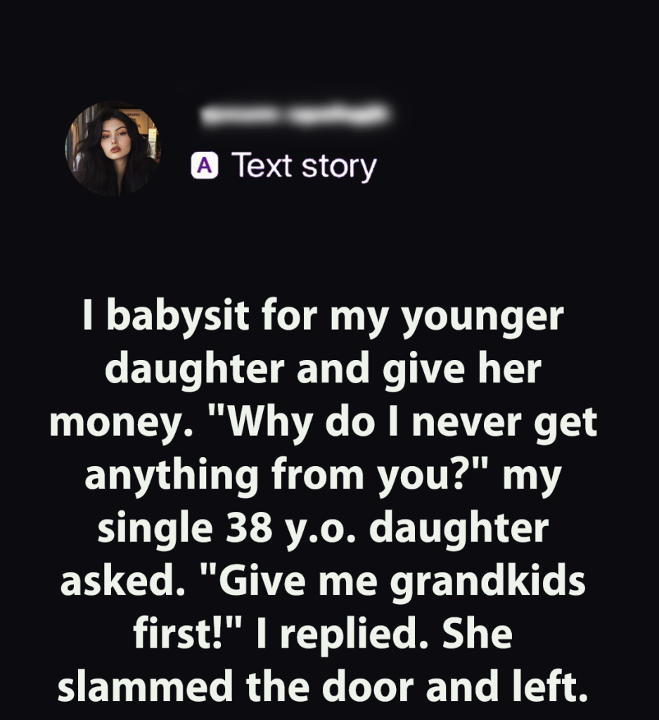 It’s been months since that conversation. She’s been managing on her own, struggling but surviving. And while I ache at the distance between us, part of me hopes this will teach her resilience, responsibility, and maybe—someday—the value of family. Whether she chooses to be a mom or not is ultimately her decision. But my support? That’s reserved for the day she learns life isn’t just about her.