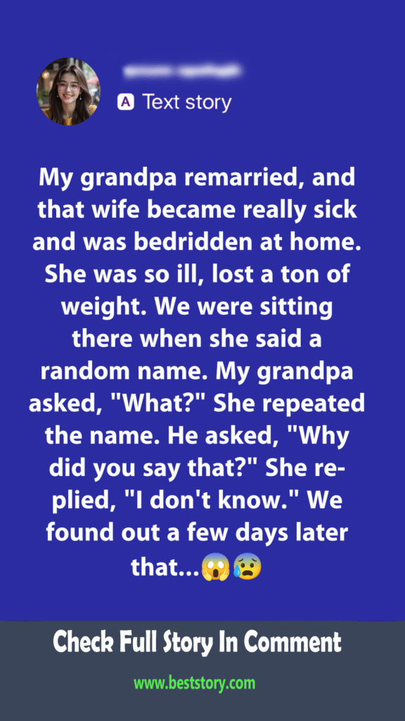 - My grandpa remarried, and that wife became really sick and was bedridden at home. She was so ill, lost a ton of weight, and looked incredibly frail. She wouldn’t talk much but would say something now and then.