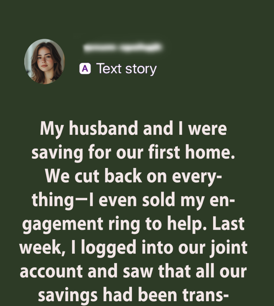 My (32F) husband (35M) and I had been saving for our first home for 5 years. We made sacrifices together—I even sold my engagement ring to add to the savings. We cut back on everything. By this year, we had tens of thousands saved.