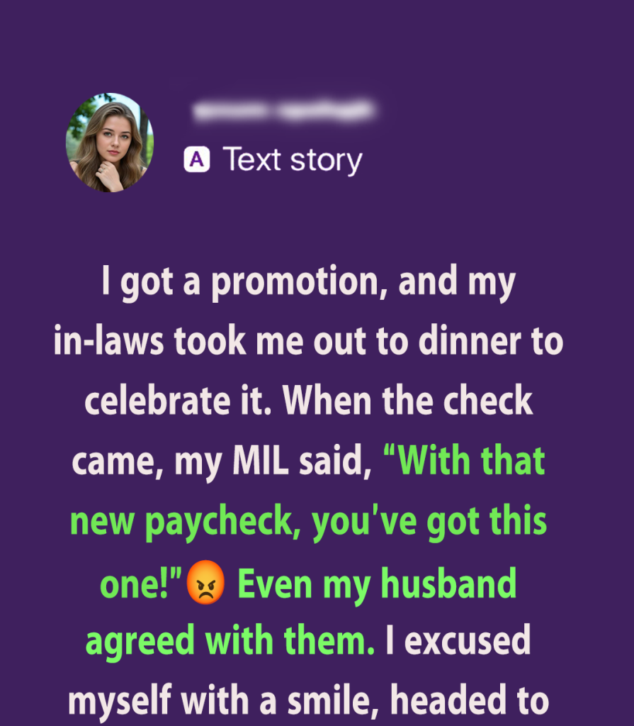 The check arrives. $860. My MIL smiles sweetly and says, “Well, with that new paycheck, I’m sure you’ve got this one!” I glance at my husband, and he actually looks… proud? Like this was expected.