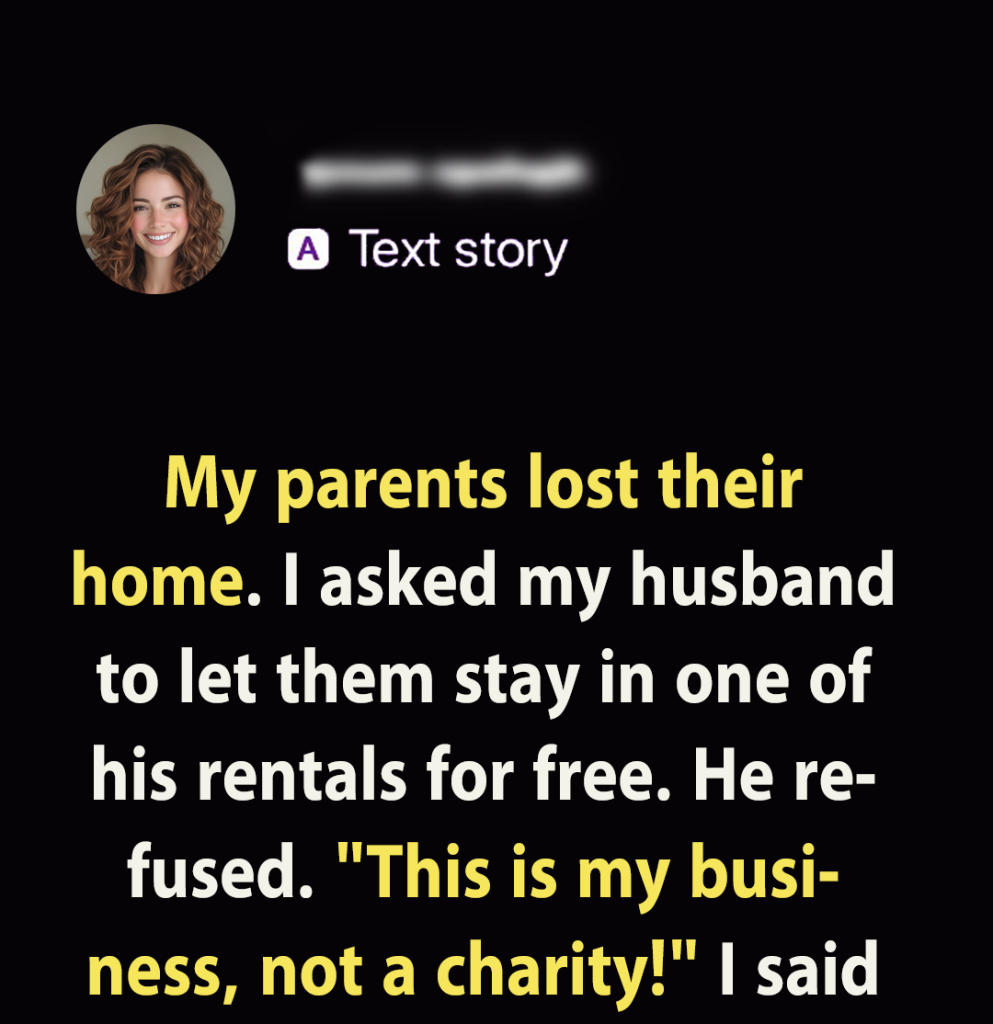 My dad, proud as ever, had packed their things already. They were heading to a cheap motel with their last bit of savings. When I confronted my husband, Adrian, he shrugged.