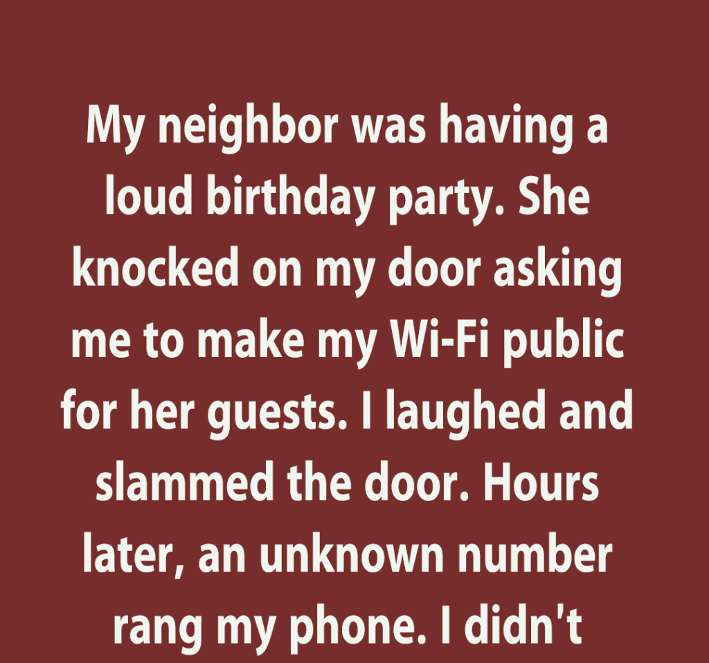 A few hours went by and an unknown number rang my phone. I didn’t answer but it kept ringing five more times. So I just decided to answer. It was my neighbor, she said, “Hey Jenna! I just wanted to apologize for earlier. I realized how silly my request was. Of course you wouldn’t want to open your private network. I wouldn’t either. So I wanted to make it up to you.”