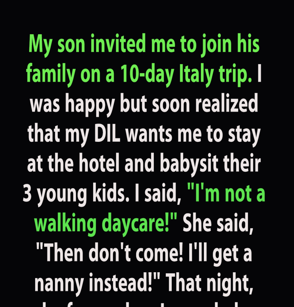 I was happy and thrilled, but I soon realized that my DIL wants me to stay at the hotel the whole time and babysit their 3 young kids, aged 7, 5, and 2.