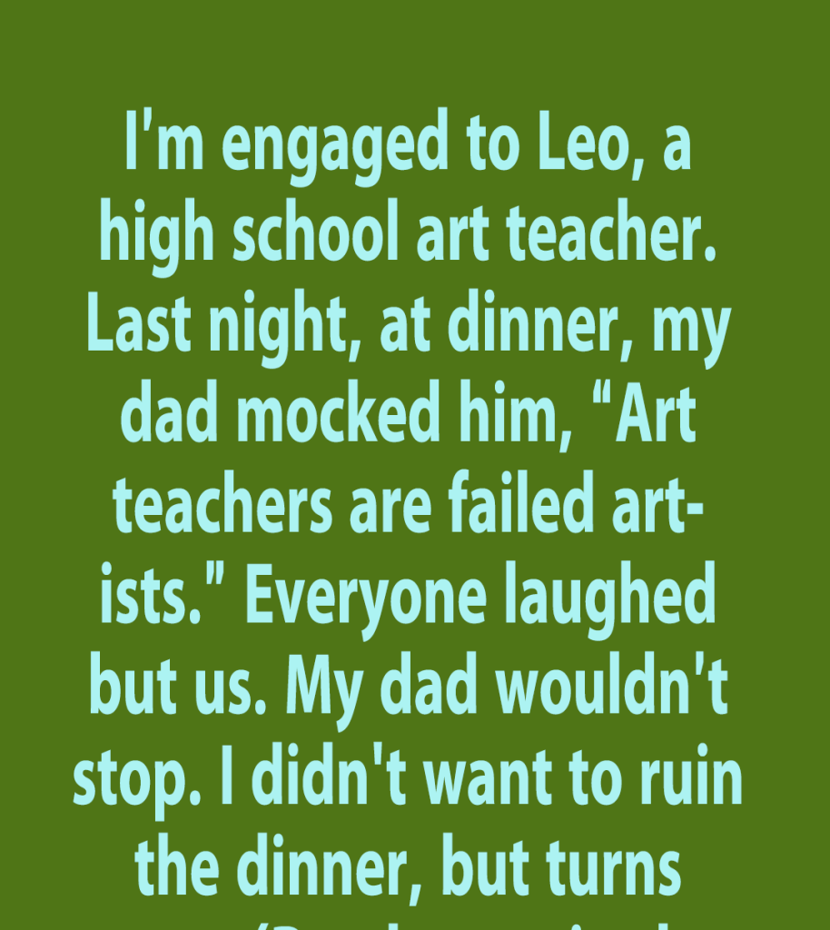 My mom gasped, my sister gave me a “seriously?” look, and Leo just squeezed my hand and stayed quiet. Then out of nowhere, my dad explained that he was an art teacher for years, until he left for a better-paying job to support the family.
