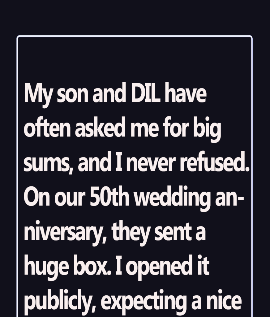 Anyway, at our 50th anniversary party, we had friends and family over. My son and DIL showed up with this giant box, and I thought, ‘Wow, maybe they finally went out of their way to do something nice for us.’ Everyone was excited, and we opened it right there in front of the guests.”