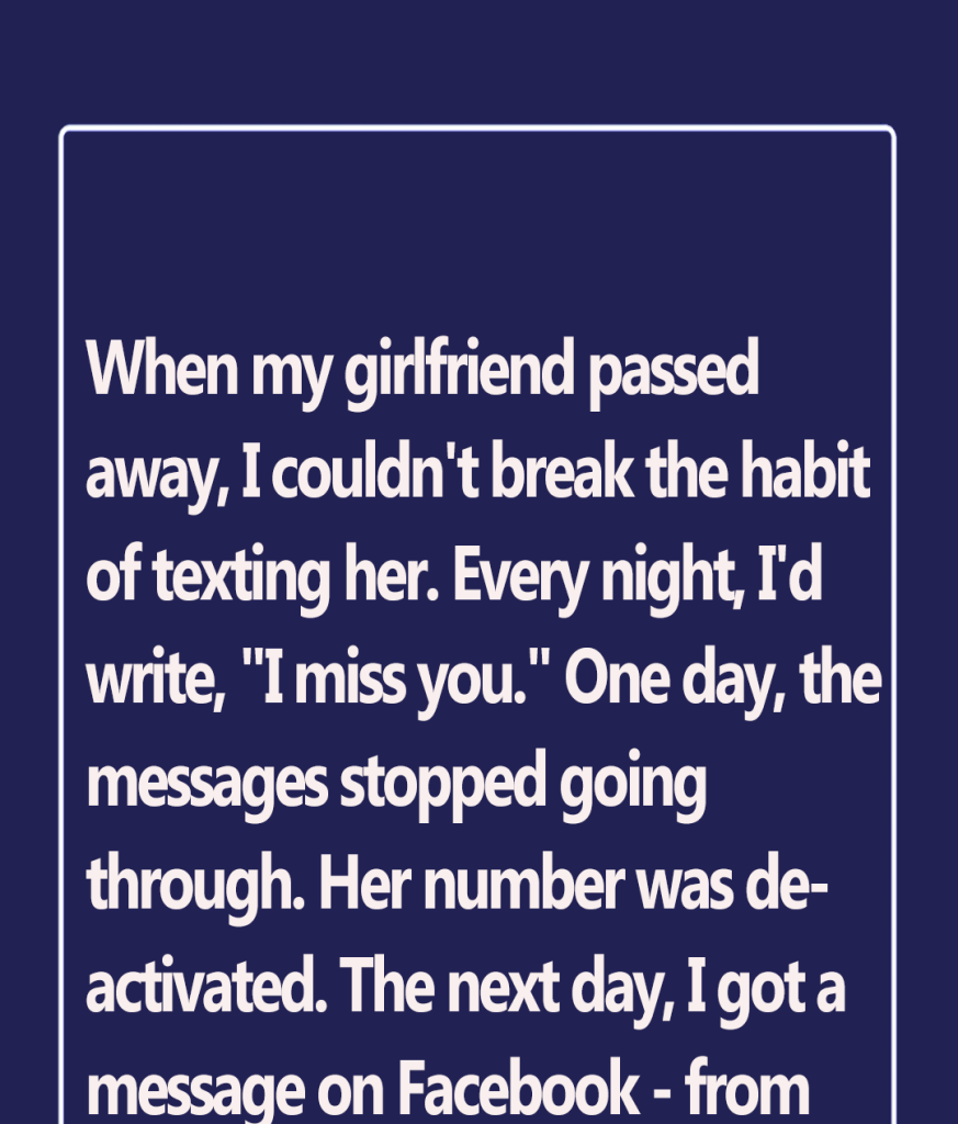 When my girlfriend passed away, I couldn’t break the habit of texting her. Every night, I’d write, “I miss you.” One day, the messages stopped going through. Her number was deactivated. The next day, I got a message on Facebook – from her account. My heart nearly stopped. “Hello, honey,” it read.