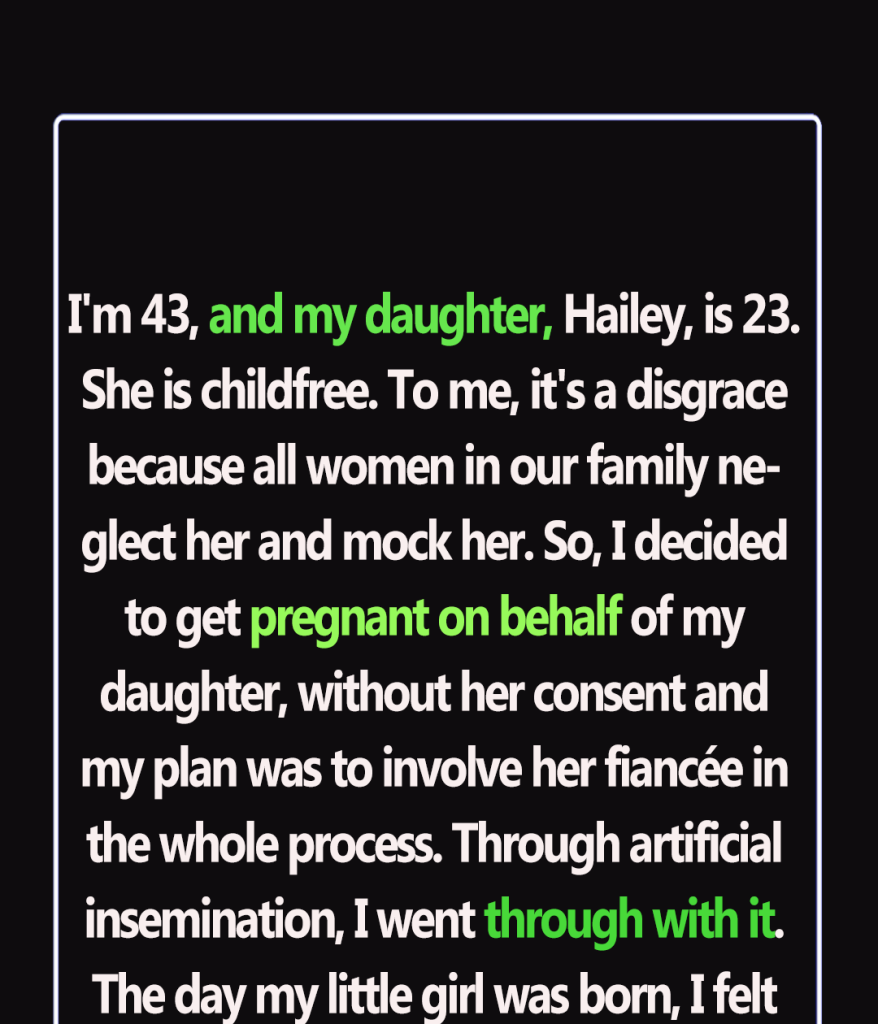 It sounds insane now, but at the time, I convinced myself it was an act of love. I told myself I’d be “helping” Hailey realize what she was missing. I thought once she saw a baby in her arms — her own flesh and blood — she’d feel that instinct awaken.