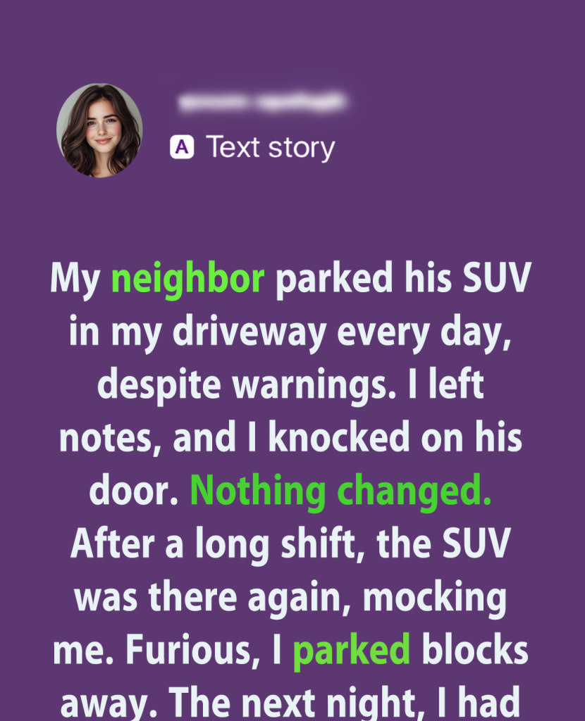 I’ve got this neighbor who treats my driveway like his personal parking spot. He drives a big black SUV and parks it there as if he’s marking his territory. The first time it happened, I figured it was an honest mistake.