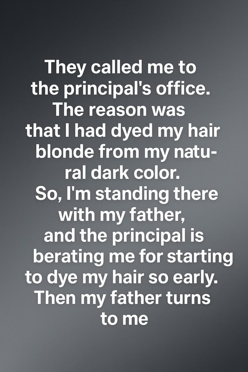They called me to the principal’s office one morning, and I felt my heart flutter with confusion. I had always tried to follow the rules, so I couldn’t imagine what I had done wrong. When my father arrived, the principal explained that my newly blonde hair was the issue.