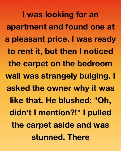 I knew I couldn’t rent the apartment without a full explanation of the structural abnormality. I walked directly to the wall, placed my hand on the bulge, and felt the rigidity of whatever lay beneath the soft carpet. I looked back at Mr.