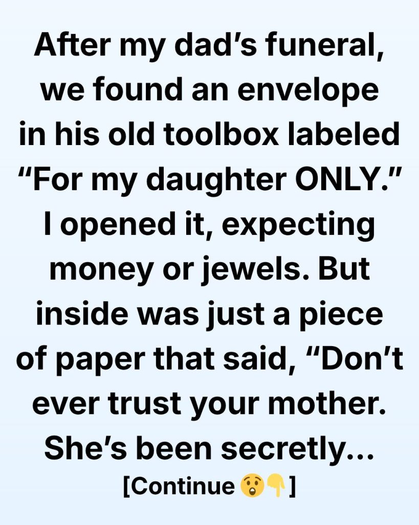 It wasn’t a keepsake. Inside was a single piece of paper—creased, smudged, and devastating. “Don’t ever trust your mother.