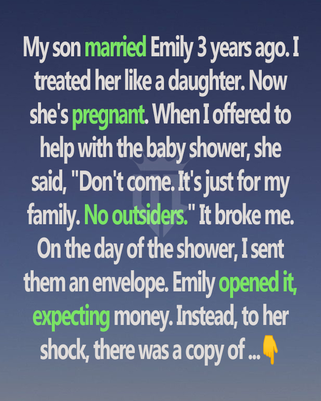 On the day of the shower, I sent them an envelope. Emily opened it, expecting money. Instead, to her shock, there was a copy of the letter I had written to my own mother the day my son was born.