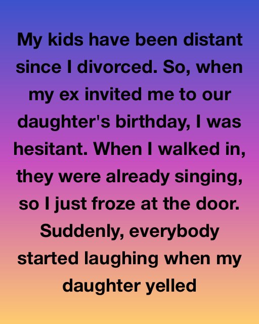 My kids have been distant since I divorced. So, when my ex invited me to our daughter’s birthday, I was hesitant. When I walked in, they were already singing, so I just froze at the door. Suddenly, everybody started laughing when my daughter yelled, “Mum! You missed the key again! Just like old times!” She ran up and threw her arms around me, still mid-laugh.