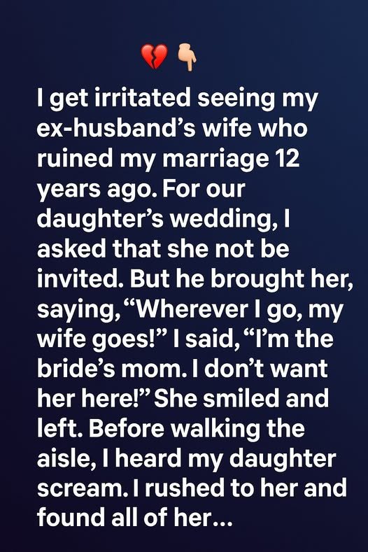 I don’t want her here!” She smiled and left. Before walking the aisle, I heard my daughter scream. I rushed to her and found all of her…standing in tears in front of a ruined bouquet and a torn part of her dress.