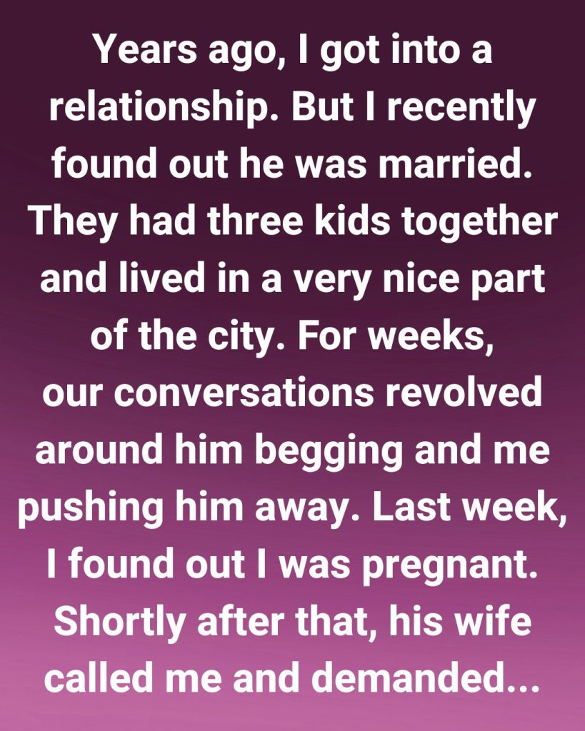 But recently, I learned the real reason—he was married. He had a wife, whom he’d been married to for ten years. They had three children together and lived in a very nice part of the city. I only discovered the truth because his wife confronted me about the “affair.”