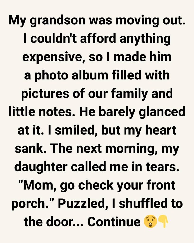 When I handed it to him on moving day, he barely opened it. Just a quick glance at the cover, a quiet “Thanks, Grandma,” and then he went right back to packing boxes. I smiled so he wouldn’t see how deeply his reaction stung, but later that night, sitting alone in my too-quiet house, I found myself wondering if the album had meant anything to him at all… or if it was just one more reminder that the world he was stepping into no longer had much room for me.