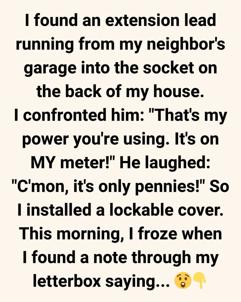A note came through my letterbox. A smug, handwritten message that made my stomach drop. He said that since I’d “blocked the community socket”—yes, he called my socket that—he would now need to charge his e-bike inside my house when it rains.