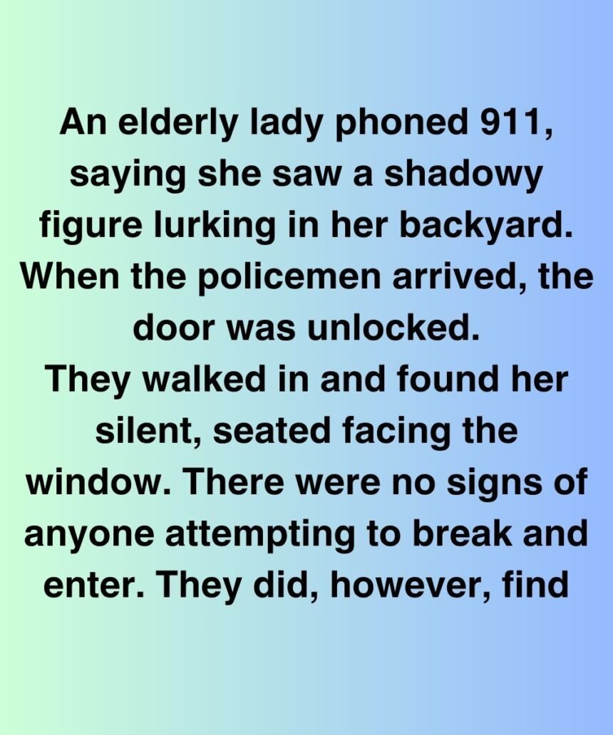An elderly woman, Mrs. Farida Khouri, called 911 one night, reporting a figure lurking in her backyard. When police arrived, they found her seated silently by the window, teacup trembling in her hand, eyes fixed on the dark garden.