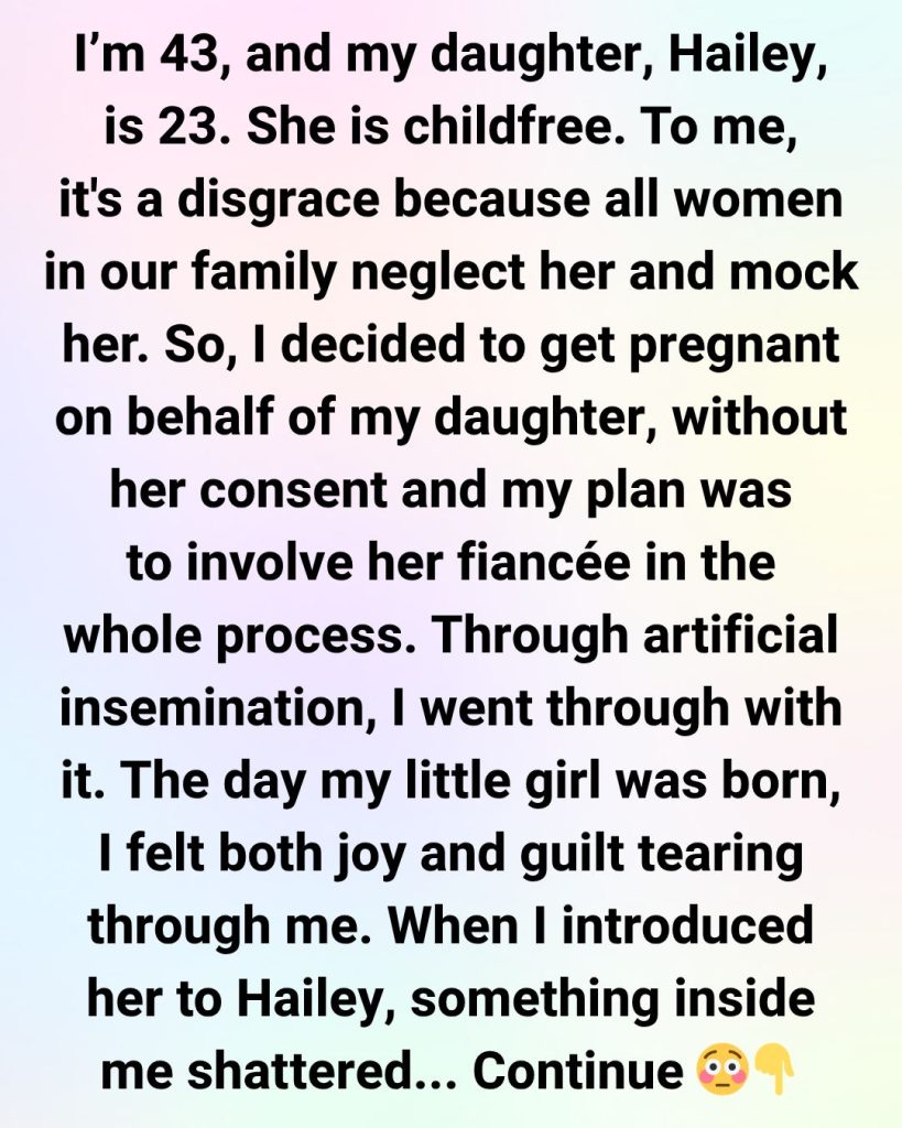 I’m 43, and my daughter, Hailey, is 23. She’s smart, independent, and beautiful — but to my utter shock, she decided to live a childfree life. When she told me she’d even gone through sterilization, I felt like the ground disappeared beneath my feet.