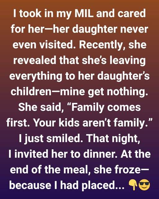 When my mother-in-law could no longer live alone, I welcomed her into our home without hesitation. I helped with her routines, cooked her favorite meals, and made sure she never felt lonely. Her daughter rarely called, let alone visited, but I never complained.