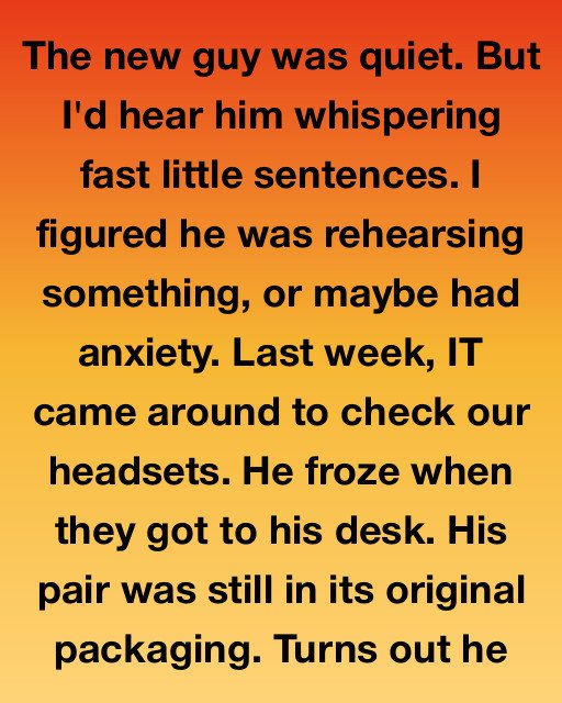 The new guy was quiet. But I’d hear him whispering fast little sentences. I figured he was rehearsing something, or maybe had anxiety.