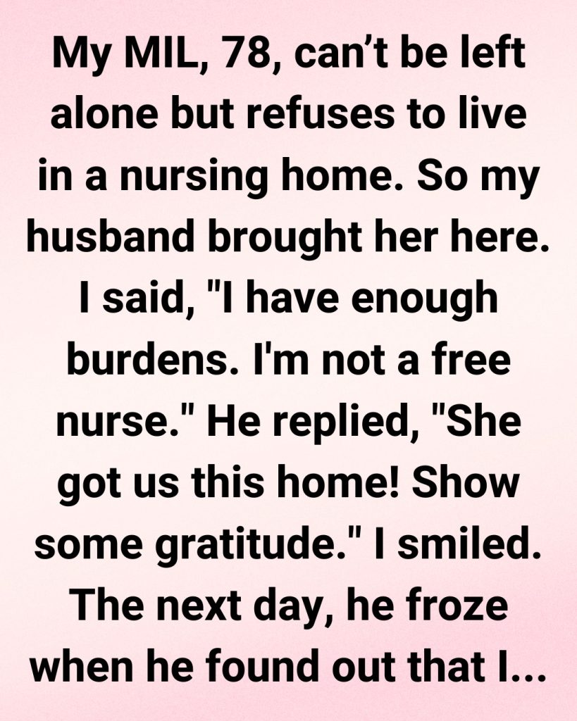 Without even consulting me, my husband decided to bring her to live with us. When he told me, I snapped, “I already have enough burdens! I’m not a free nurse!”