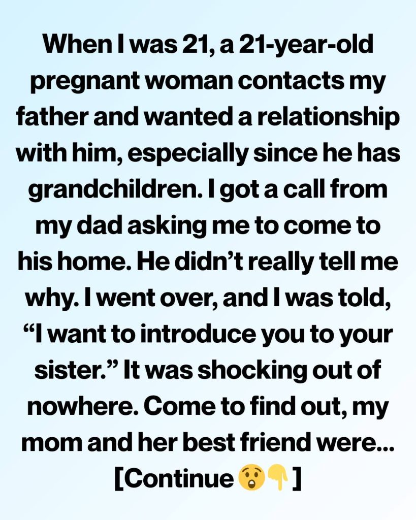 The room seemed to tilt. I laughed at first, certain I’d misheard him. I didn’t have a sister. I was an only child. But then a young woman stepped forward. She was visibly pregnant, about my age—maybe even younger. When she told me she was twenty-one, my stomach dropped. We were barely a month apart in age.