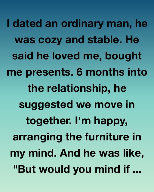 I dated an ordinary man, he was cozy and stable. He said he loved me, bought me presents. Six months into the relationship, he suggested we move in together. I’m happy, arranging the furniture in my mind. And he was like, “But would you mind if my mom moved in with us too?”