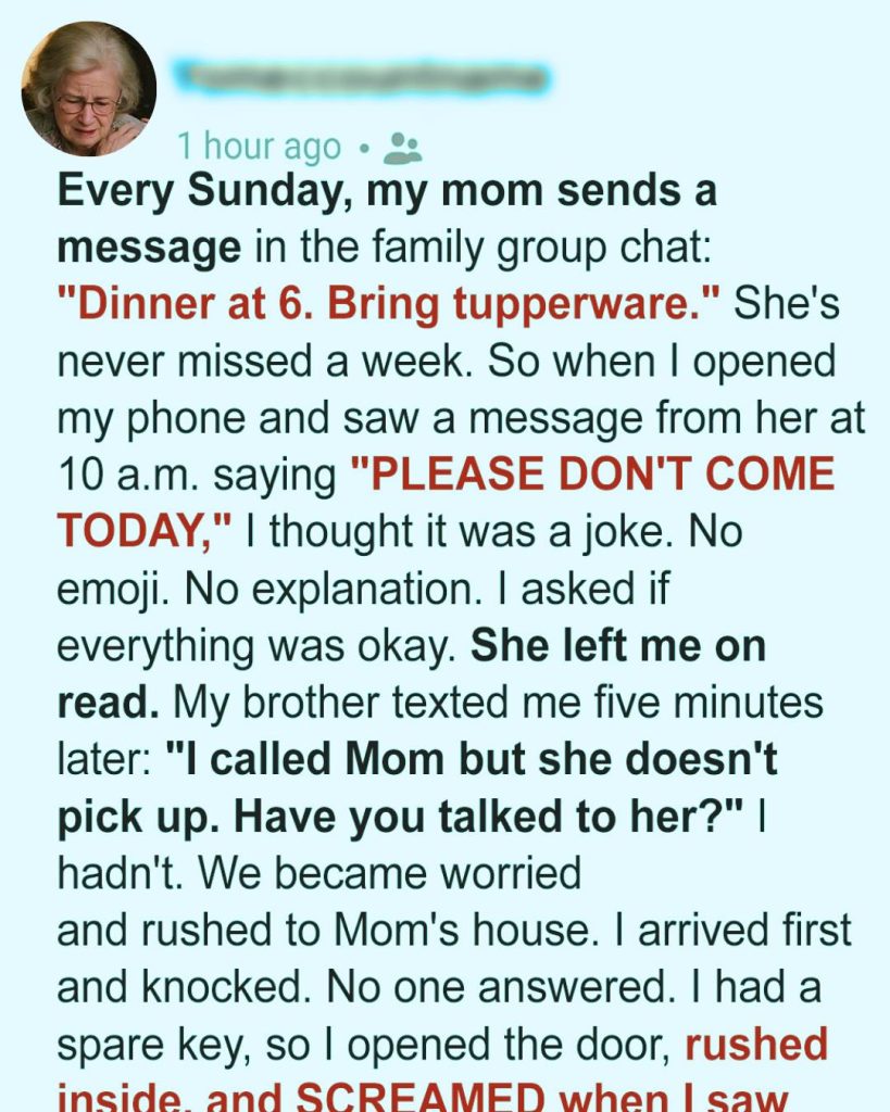 I arrived first. Mom lives only ten minutes away from me, but that drive felt like an hour. When I pulled up, the curtains were closed. That was the first red flag—Mom always opens her windows first thing in the morning to “let the sun bless the house,” as she says.
