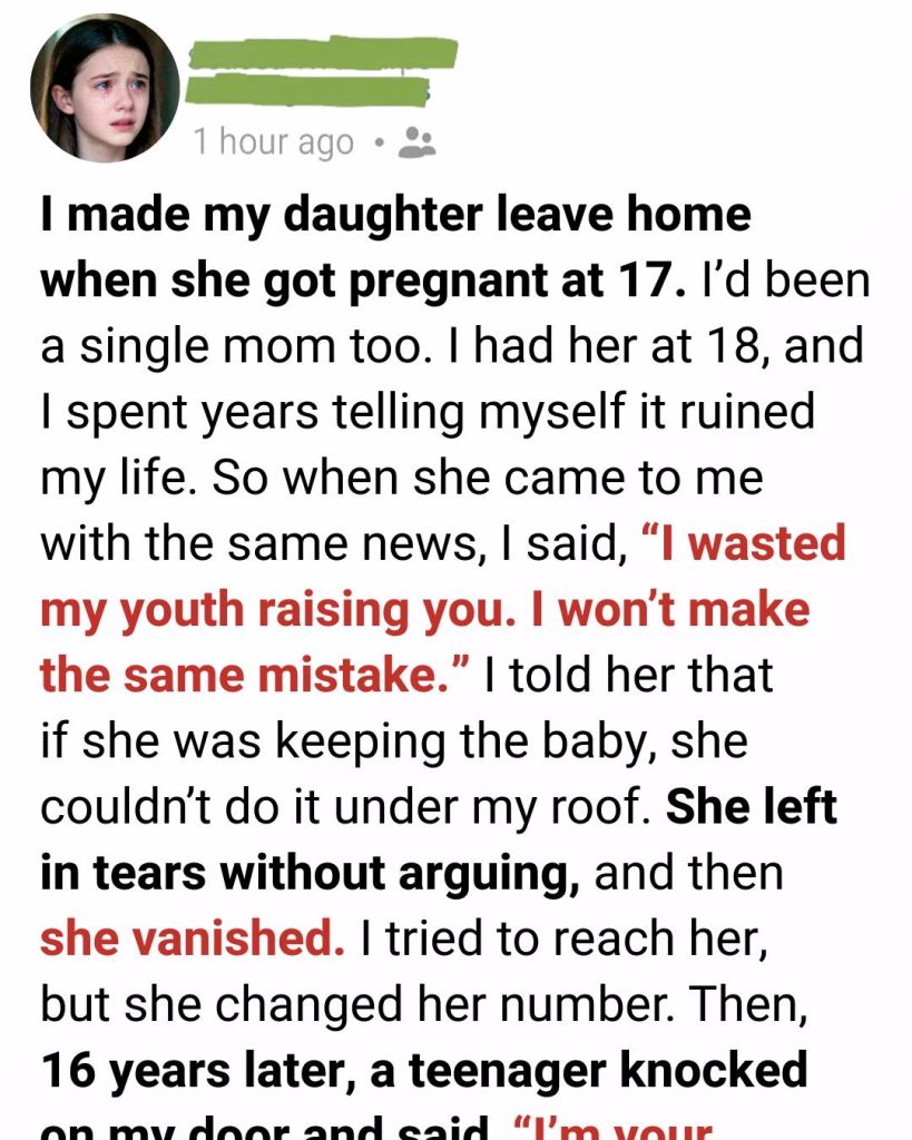 I made my daughter leave home when she got pregnant at seventeen. I’d been a single mom myself, barely eighteen when she was born, and I spent years telling myself that her arrival had trapped me, limited me, stolen what little youth I had left. Instead of healing those thoughts, I carried them like stones in my pockets, heavy and bitter.