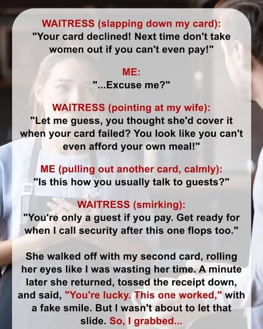“Declined Card, Rude Waitress – And the Quietest Revenge She Never Saw Coming”