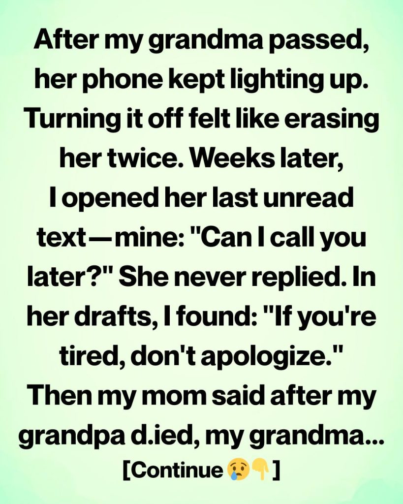 She sighed softly. “After your grandfather died, your grandma started writing messages to herself,” she said. “Things she wished someone had told her. She kept them in drafts because she said, ‘Someday someone might need the words.’”