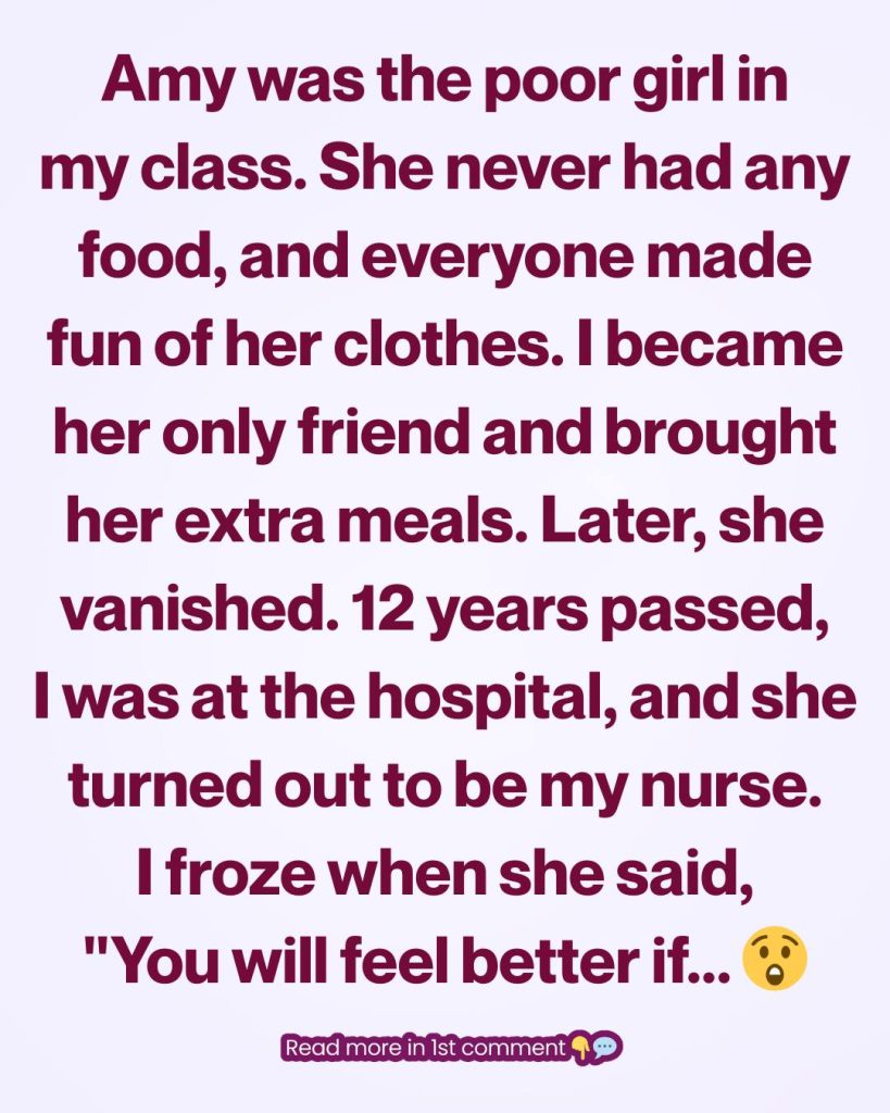 Amy was the poor girl in my class. Everyone knew it, even if no one ever said it kindly. Her sweaters were always too thin for winter, her shoes cracked at the soles, and her backpack looked like it had lived several lives before it reached her shoulders. At lunch, she sat alone, pretending to read while the rest of us lined up for hot meals. Sometimes she didn’t even have a tray.