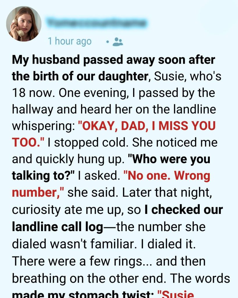 That night, sleep wouldn’t come. My thoughts raced in tight, panicked circles. Susie had never lied to me—not like that. Curiosity and fear twisted together until I couldn’t stand it anymore. I went to the kitchen and checked the landline’s call log.