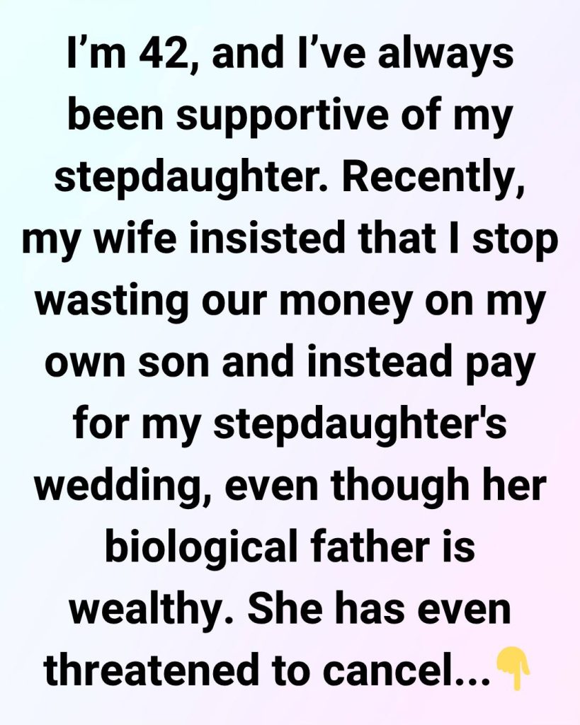 Her daughter is getting married in just a few weeks, and she’s short on money for the venue. I refused to contribute—not because I don’t care, but because her biological father is wealthy and has already offered to help. Still, my wife refuses to accept a cent from her ex.