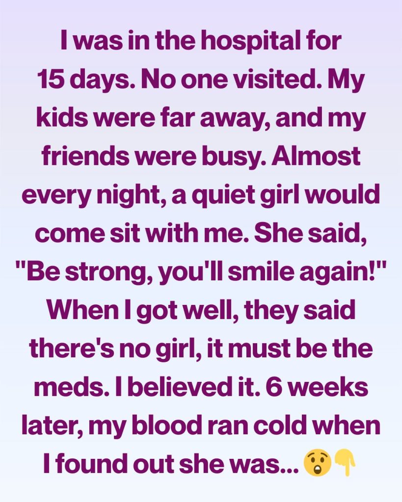 She was quiet, maybe thirteen or fourteen, with dark hair she tucked behind her ears and eyes that seemed older than her face. She never said much. She would pull a chair close to my bed and sit there, hands folded in her lap, as if she belonged. I couldn’t speak, couldn’t ask who she was or why she came, but somehow she understood. She’d lean in and whisper softly, careful not to disturb the room.