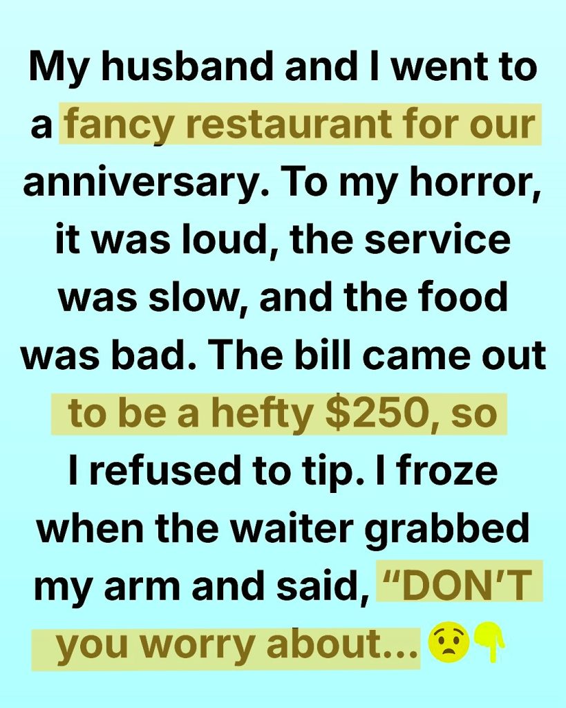 My husband and I decided to celebrate our anniversary at a fancy restaurant we’d been saving up for, and we even booked a table in advance. We wanted the evening to feel special, but from the moment we walked in, everything was chaotic.